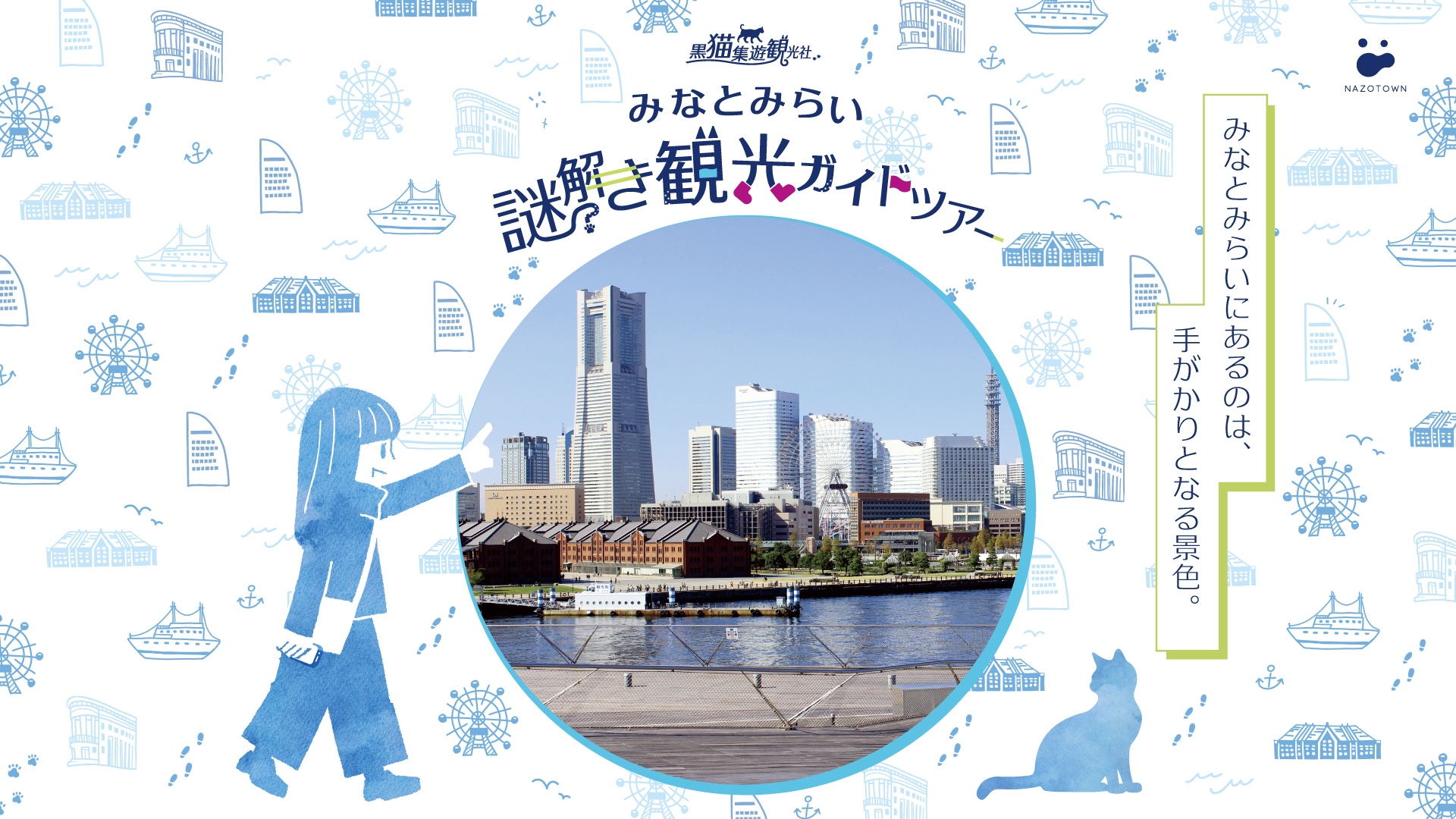 黒猫集遊観光社は、横浜を中心としたエリアで「謎解き」と「観光」を組み合わせた体験型ツアーをご案内する観光社です。